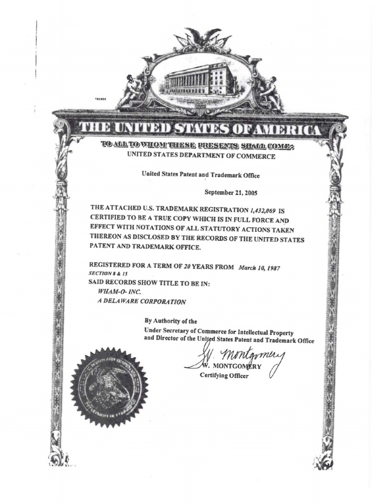 THE ATTACHED US. TRADEMARK REGISTRATION 1,432,069 IS