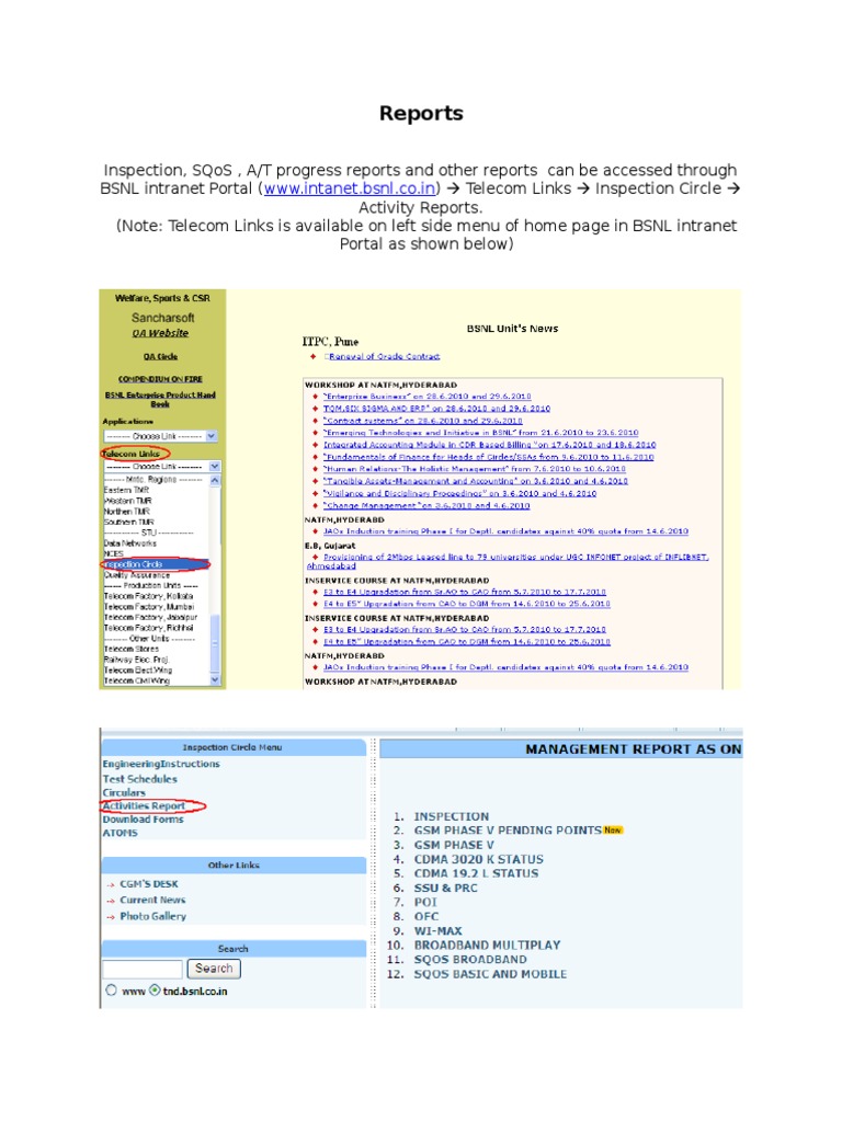BSNL intranet Portal ([Link]) Telecom Links Inspection Circle
