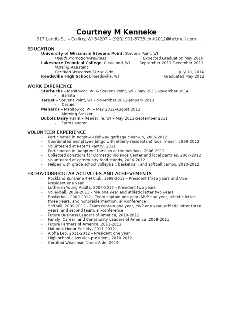 917 Landis St. Collins, WI 54207 (920) 901-5735 cmk2012@hotmail.com
