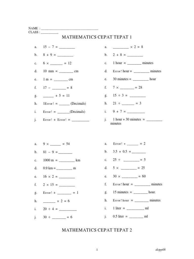 e. 1.5 jam = ________ minit e. 2 − 1.5 = ________