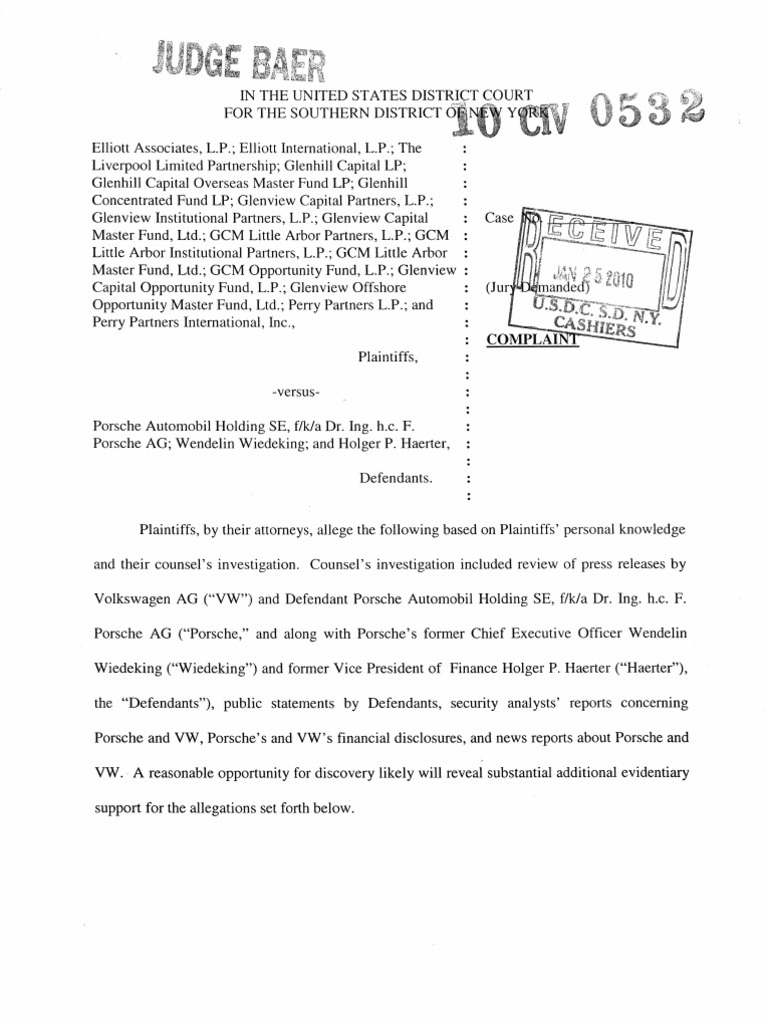 Elliot Associates, Glenview Capital and Perry Partners have filed a lawsuit against Porsche, accusing the German car company of costing them $1billion in a massive short-squeeze in shares of…