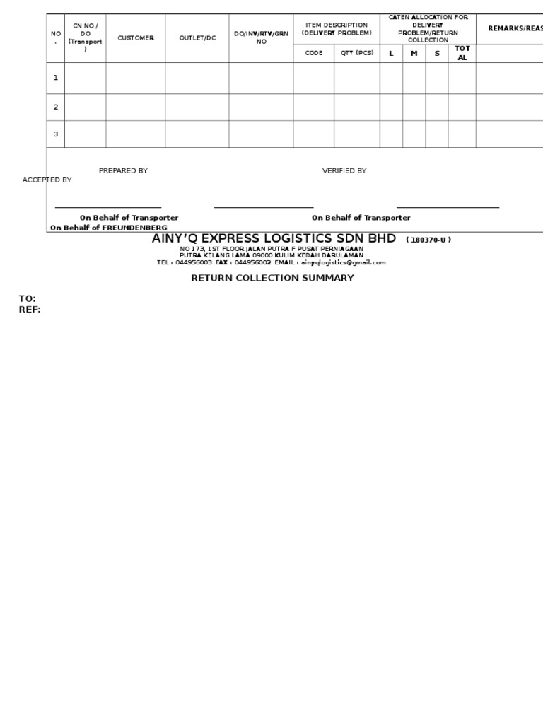 TEL : 044956003 FAX : 044956002 EMAIL : ainyqlogistics@gmail.com