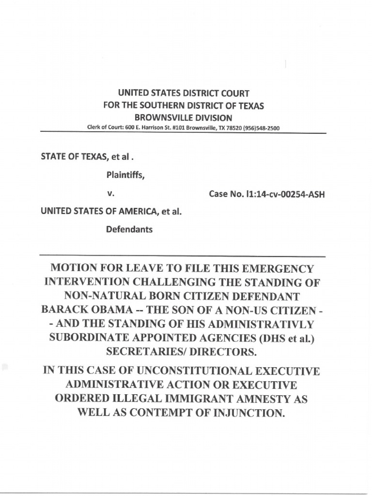 USDC TXSD B-14-254 Motion to Intervene for the Purpose of Filing an Original Proceeding Special Writ of Mandamus to USCA-5C