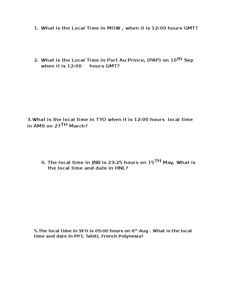 1. What is the Local Time in MOW , when it is 12:00 hours GMT?