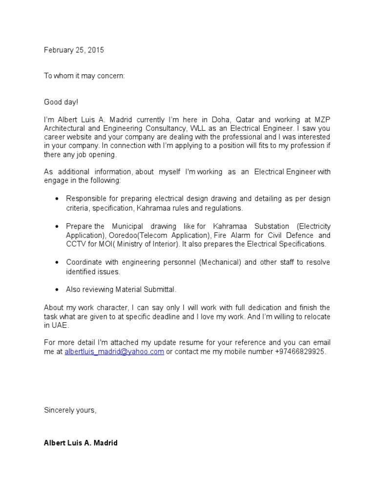 Architectural and Engineering Consultancy, WLL as an Electrical Engineer. I saw you