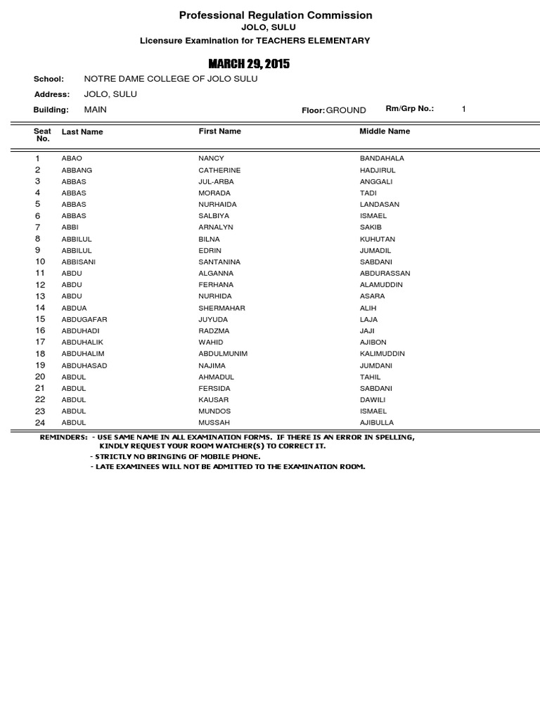 REMINDERS: - USE SAME NAME IN ALL EXAMINATION FORMS. IF THERE IS AN ERROR IN SPELLING,