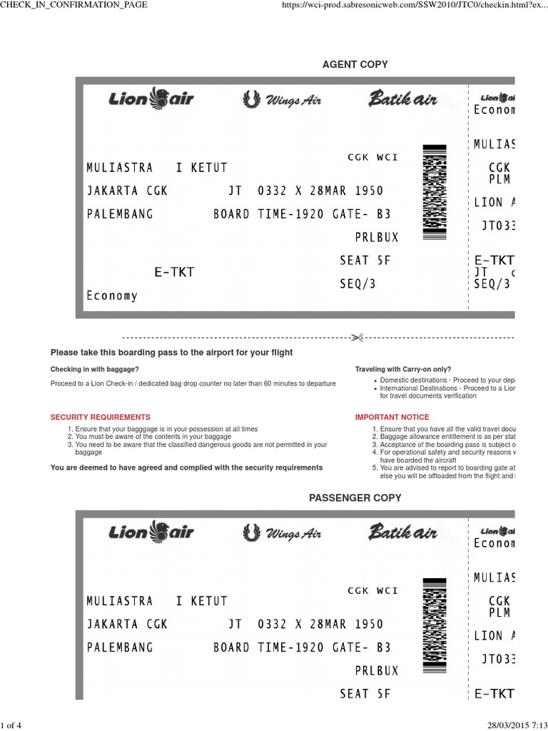 Proceed to a Lion Check-in / dedicated bag drop counter no later than 60 minutes to departure