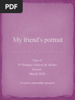 This document contains portraits created by students in class ST during March 2015, including works by Panagiotis Tr., Georgia, Billy, George, Panagiotis M., Spyros, Anthony, Kleopatra, John I., Panagiotis Ts, Chris, John S., Irene, Markella and Athena.