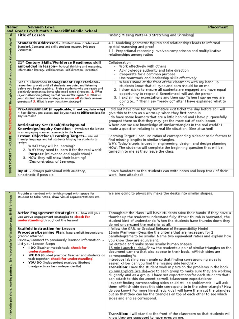 ONE PAGE: Simple Lesson Plan with all components embedded: