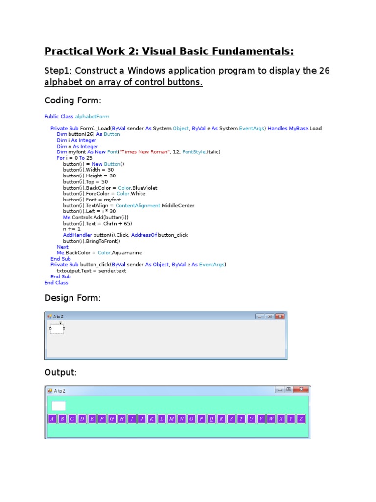 Practical Work 2: Visual Basic Fundamentals: