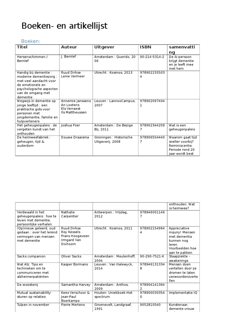 Boeken- en artikellijst