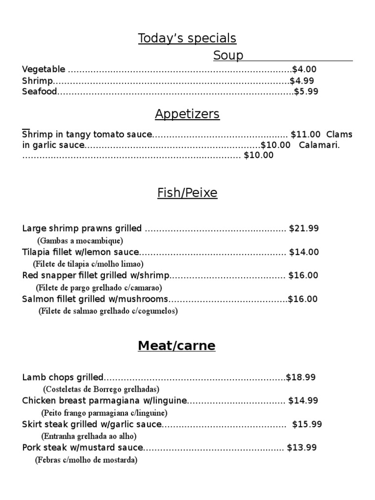 Shrimp in tangy tomato sauce......... $11.00 Clams