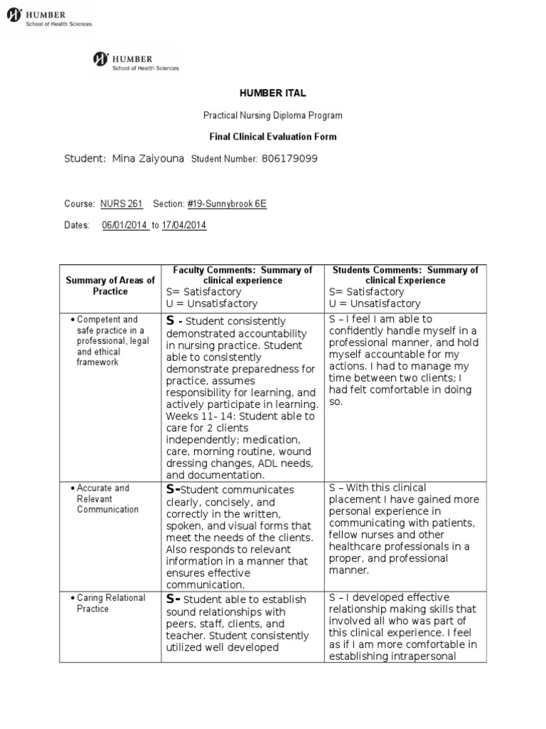 Final Clinical Evaluation Form