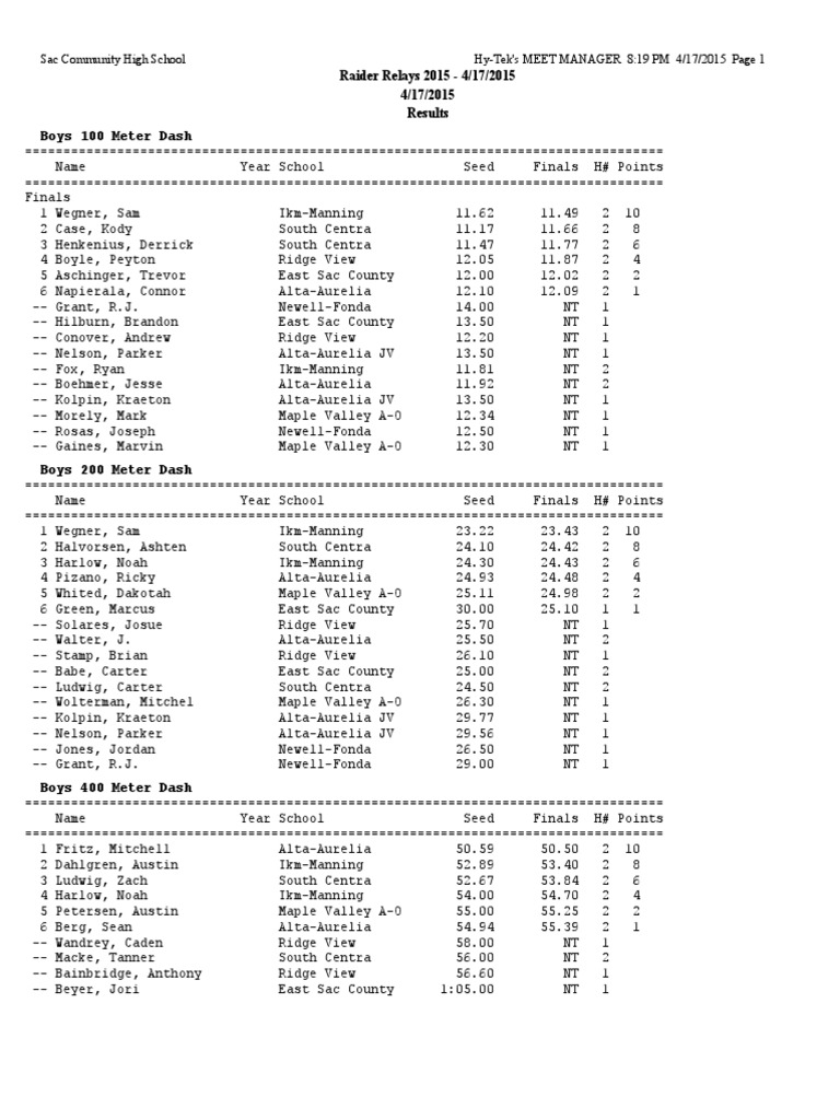 Hy-Tek's MEET MANAGER 8:19 PM 4/17/2015 Page 1