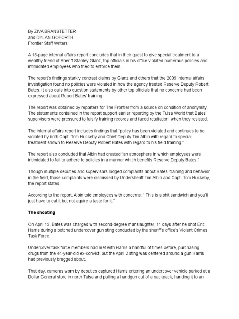 Internal Affairs Investigation Into Tulsa County Reserve Deputy Robert Bates