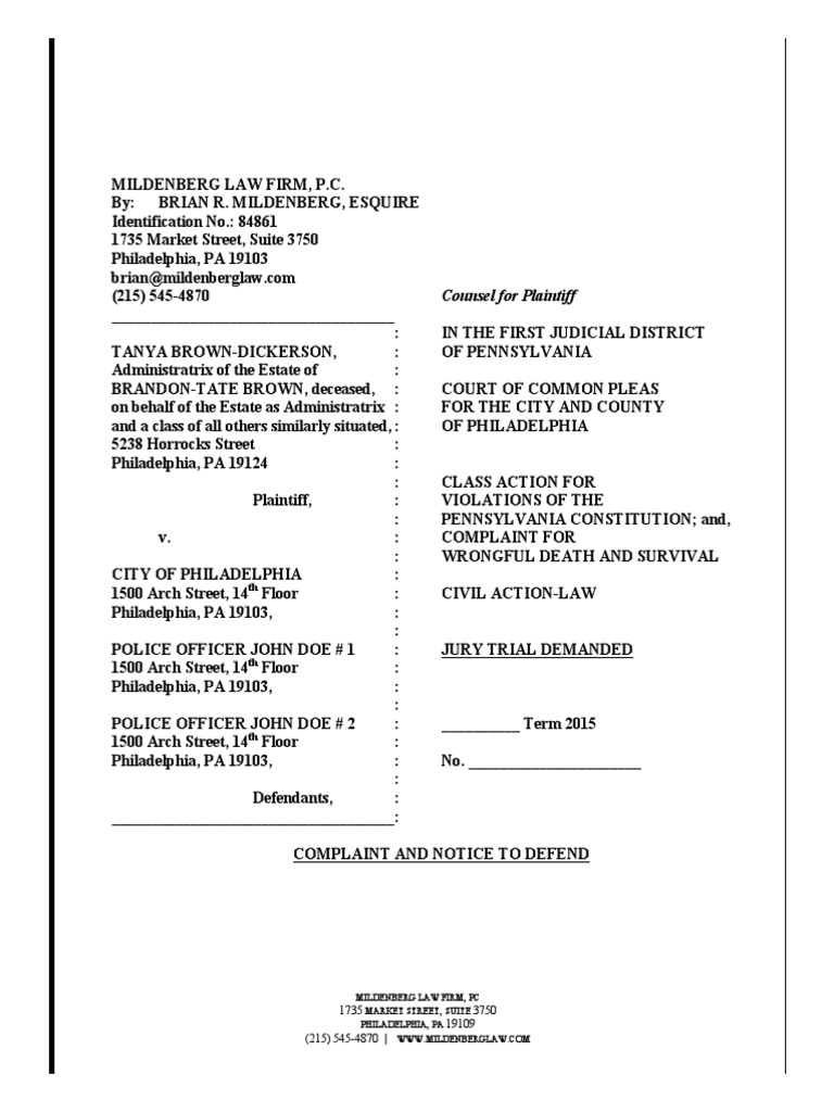 Complaint in Brown-Dickerson v. City of Philadelphia Et Al.