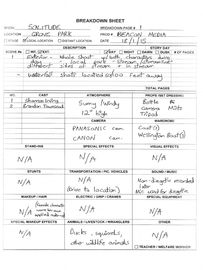 BREAKDOWN SHEET