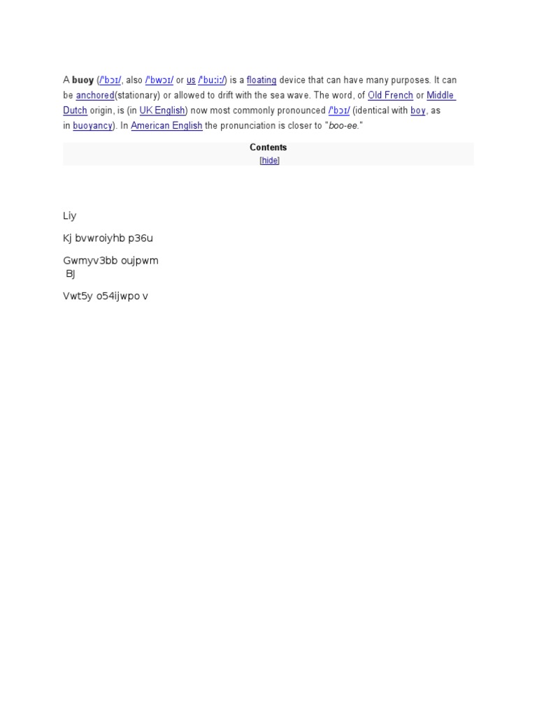 A buoy (/b/, also /bw/ or US /bui/) is a floating device that can have many purposes.