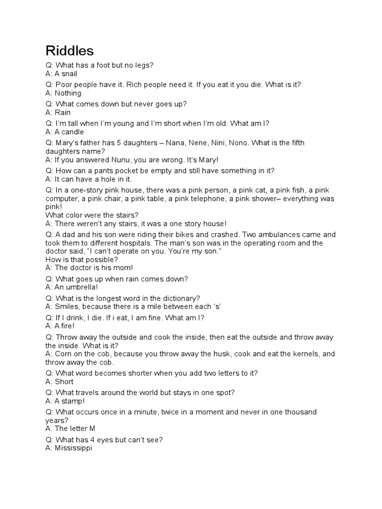 Q: Marys father has 5 daughters Nana, Nene, Nini, Nono. What is the fifth