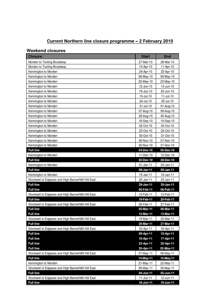 Stockwell to Edgware and High Barnet/Mill Hill East 26-Feb-11 27-Feb-11