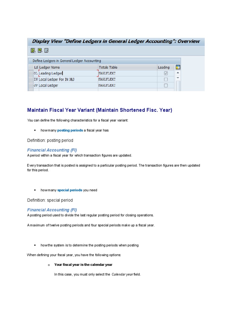 Two shortened fiscal year variants are provided with the standard system: variant R1 for a Financial Accounting