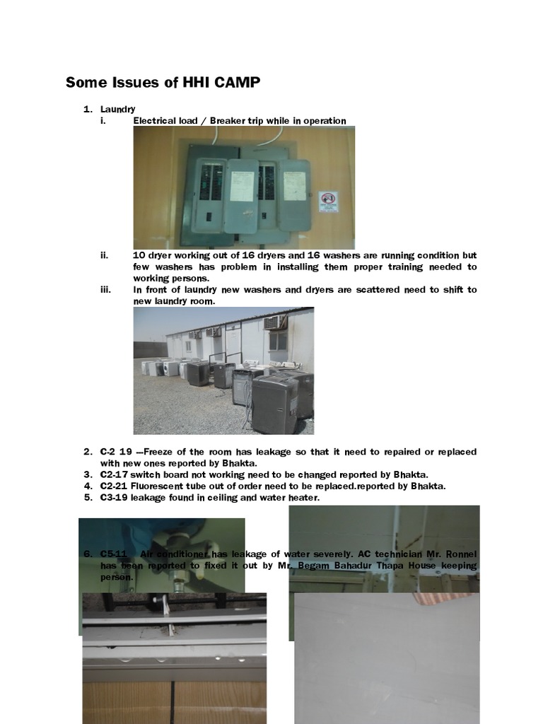9. D4 camp bathroom has the water leakage and water heater was not working since