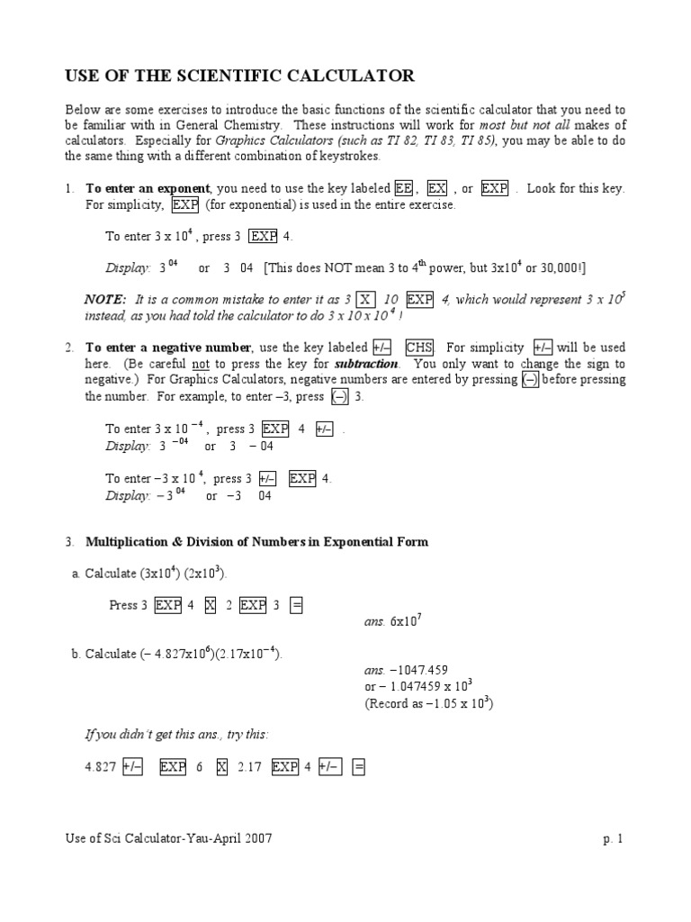 Use of Sci Calculator-Yau-April 2007 p. 1