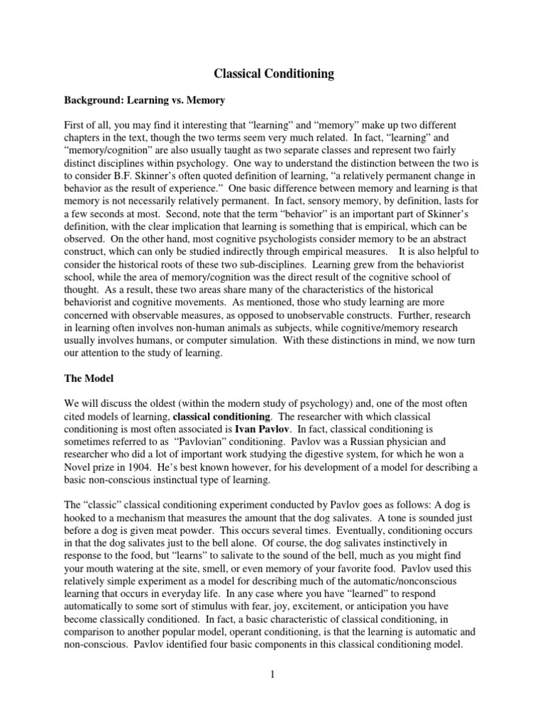 non-conscious. Pavlov identified four basic components in this classical conditioning model.
