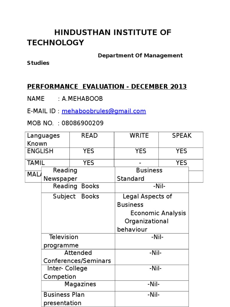 PERFORMANCE EVALUATION - DECEMBER 2013