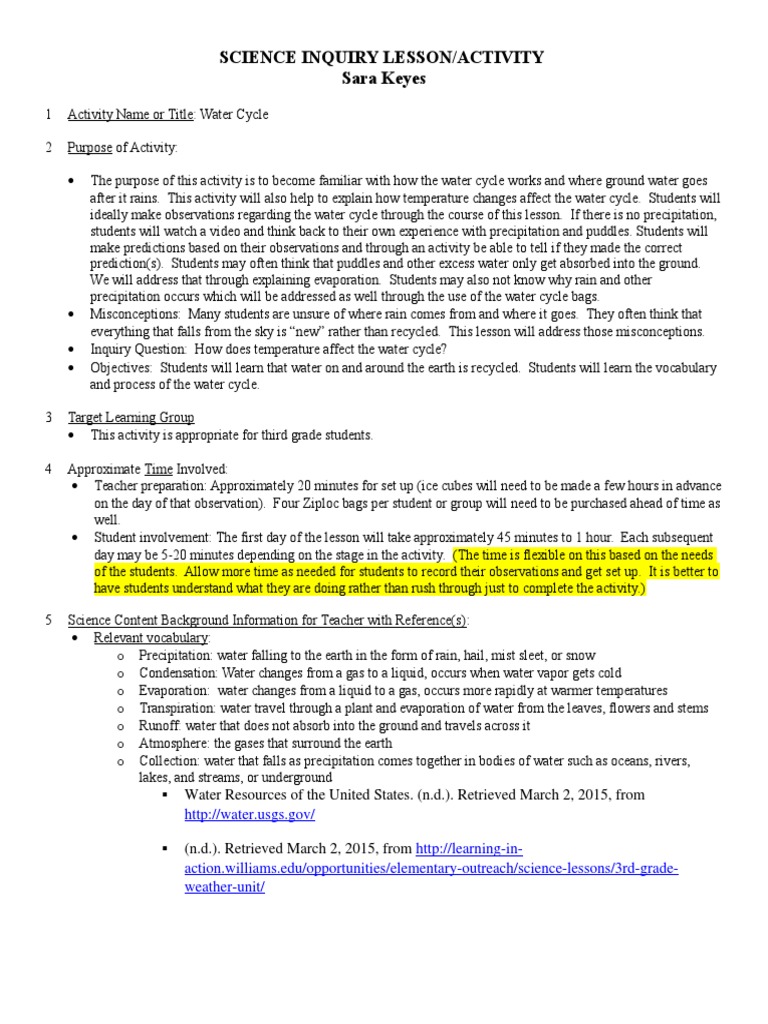 ideally make observations regarding the water cycle through the course of this lesson. If there is no precipitation,