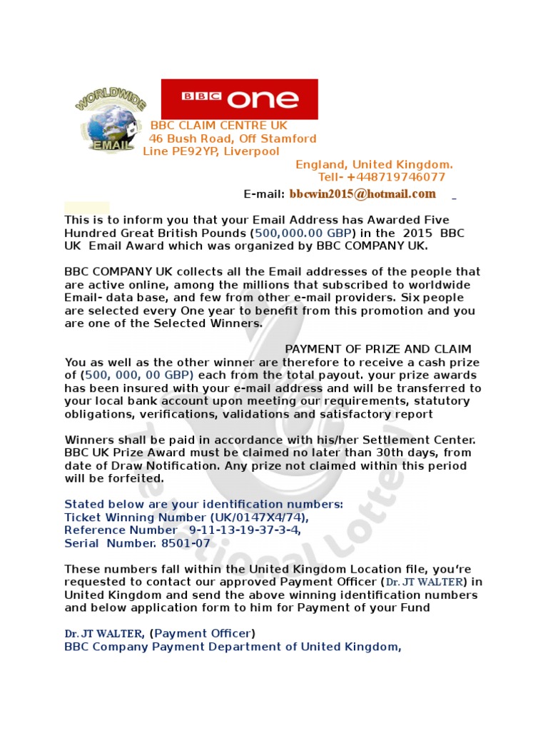 (bbcwin2015@[Link]) for the release of your fund