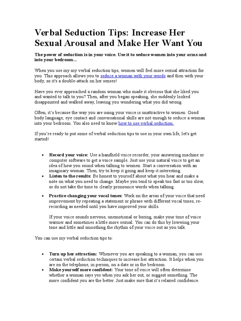 certain verbal seduction techniques to increase her attraction. It helps when you