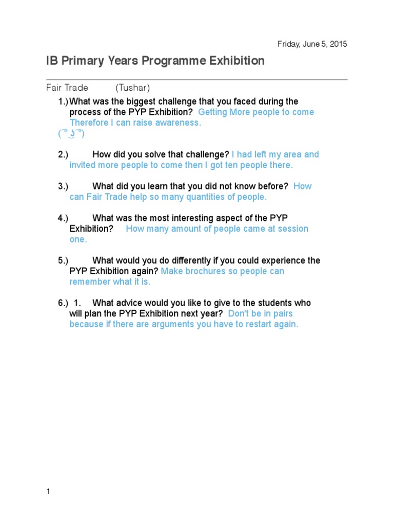 will plan the PYP Exhibition next year? Don't be in pairs