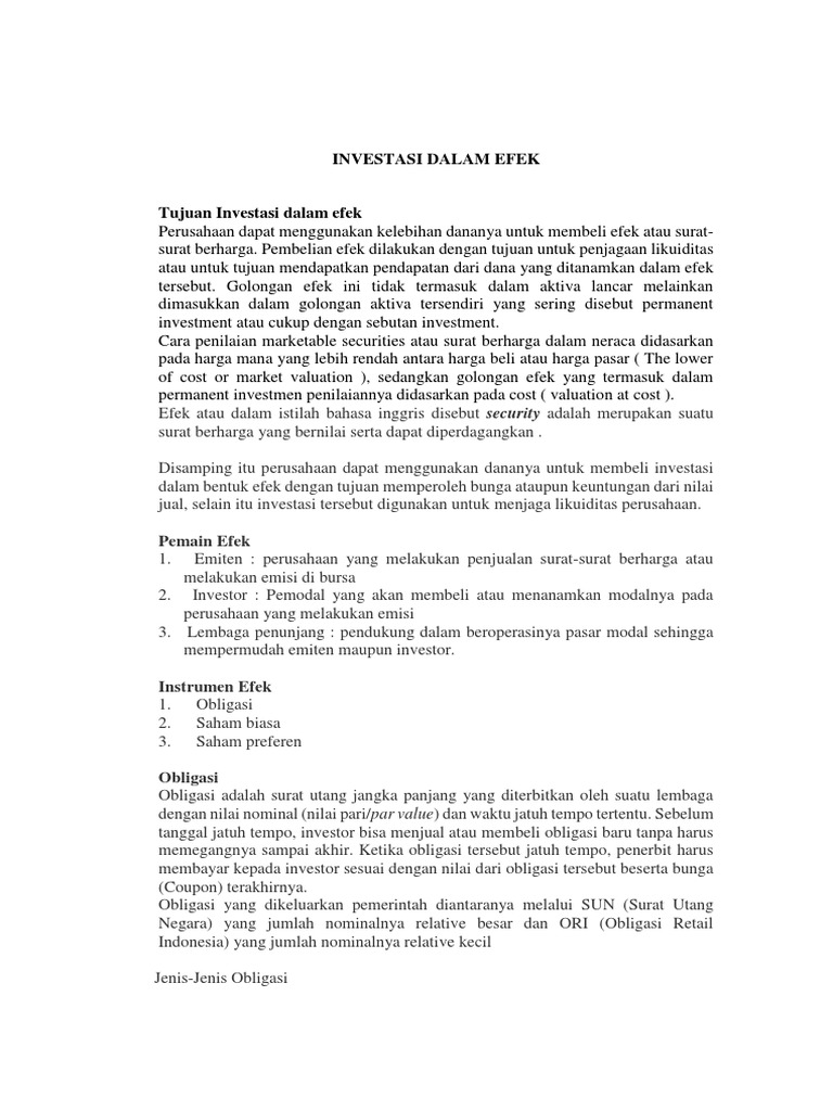 INVESTASI DALAM EFEK