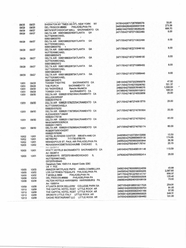 Itemized charges for credit card bills Michael Nutter paid using election campaign funds. This document was obtained through a request to the County Board of Elections under 25 Pa. Stat. Ann. § 3246(c).
