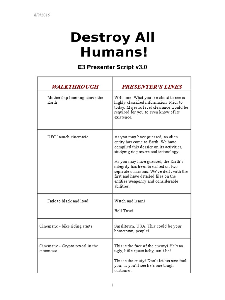 6/9/2015this space frea&s hans.inematic 7 )armer is hel in beam" rypto initiates probe" first probe is painful1 in = +mericans say that they" or someone they &no$" been abucte by aliens.inematic 7 continues" secon probe is pleasurable->?@ of those $ho have been abucte by aliens report having a positive e'perienceinematic 7 thir probe an rop farmer.AbeatB hoc&ing" ; &no$. e$spaper 3ealine" fae to blac&(tiliing our far reaching influence" $e manage to &eep the populace ignorant of the alien presence.inematic 7 Establishing shots of fair an rivein;ts fienish plan to infiltrate humanity le from the isolate farms of the Mi$est to bustling suburbia.tart in cover Coy natch a personhey can loo& li&e anyone. hey coul loo& #ust li&e you- ApointsB Maybe evenyou- ApointsBun into the fair in isguise.orte' can a fe$ peopleurious little bastar" ain,t itD+pproach bottle nec& cro$ one an stop otice ho$ it avois large groups of people. !erhaps it has ifficulty maintaining the illusion of humanityDee ho$ it avois the cro$s. *ur top men believe this to be a $ea&ness in it,s illusory po$ers.3ypnotie a person;t can control the mins of the $ea& $ille. :uc&ily some of us are traine toresist->