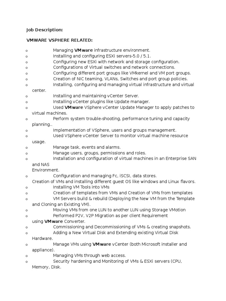 Creation of VMs and installing different guest OS like windows and Linux flavors.