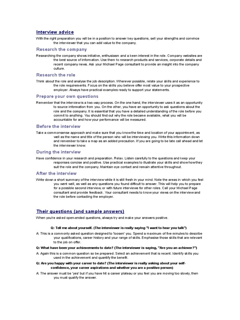 for a possible second interview, or with future interviews for other roles. Call your Michael Page