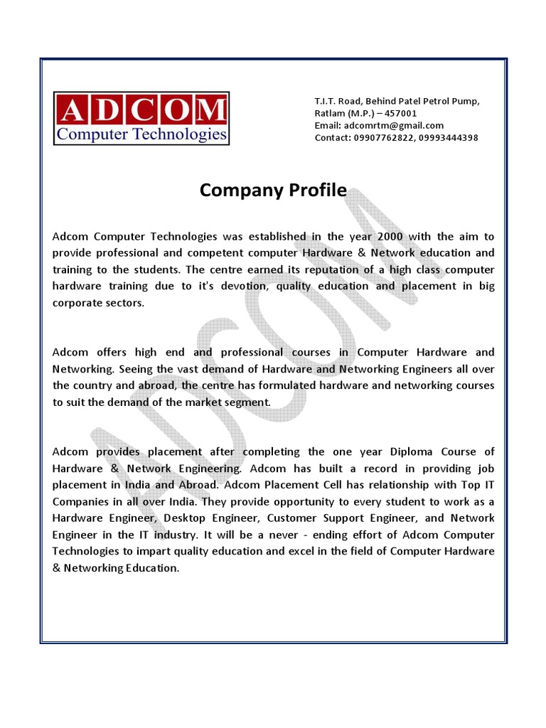 Hardware & Network Engineering. Adcom has built a record in providing job