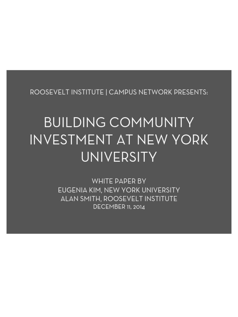 In this paper we propose that NYU invest $500,000 into the surrounding low-income neighborhoods, specifically into
