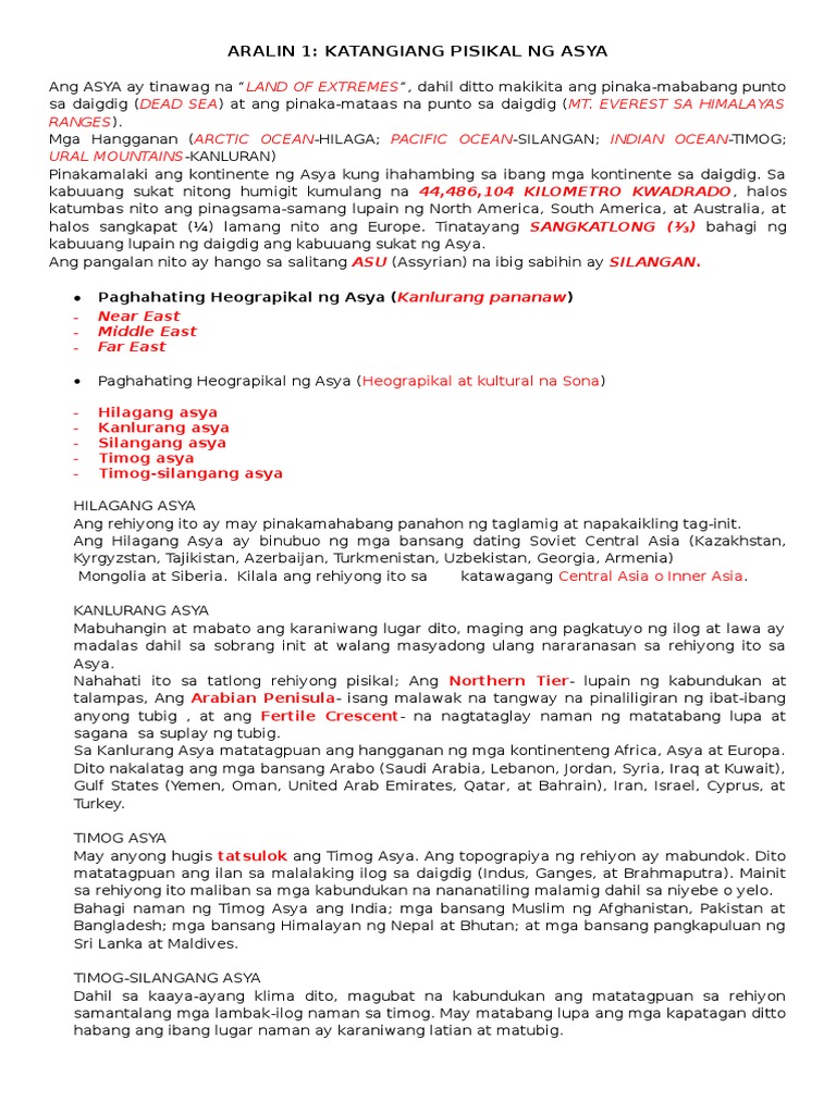 ARALIN 1: KATANGIANG PISIKAL NG ASYA