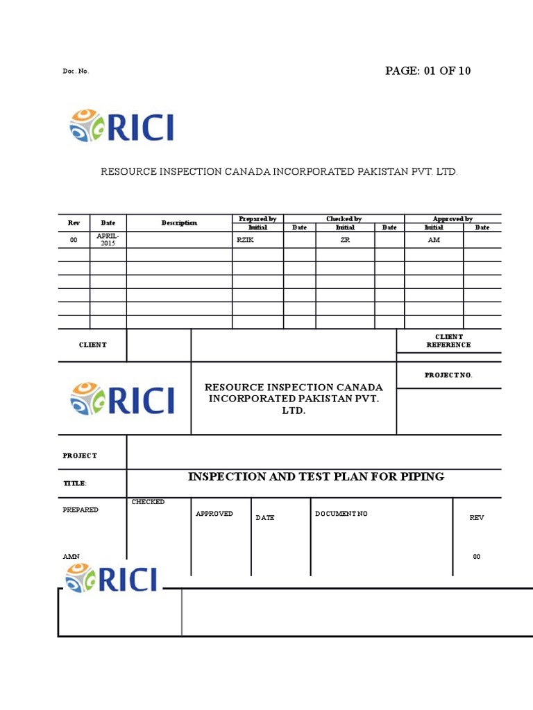 RESOURCE INSPECTION CANADA INCORPORATED PAKISTAN PVT. LTD.