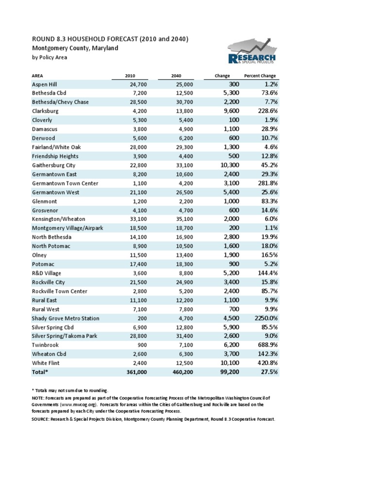 SOURCE:Research&SpecialProjectsDivision,MontgomeryCountyPlanningDepartment,Round8.3CooperativeForecast.