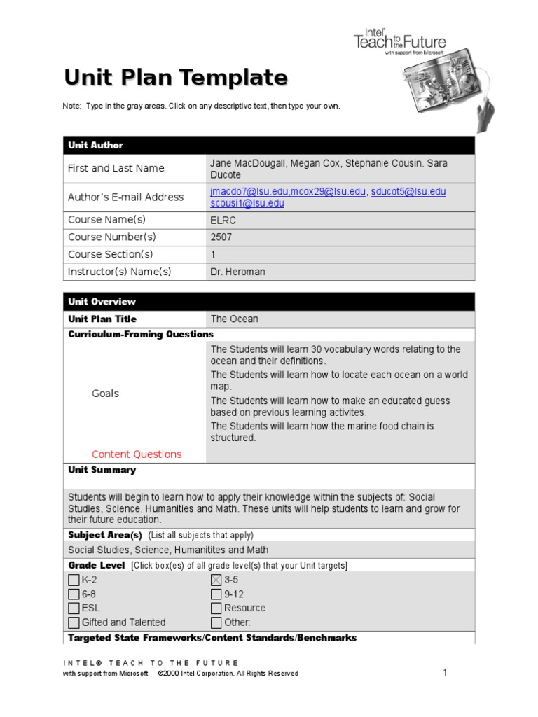 How are you going to assess the whole unit? I am including a unit plan rubric for you to use.