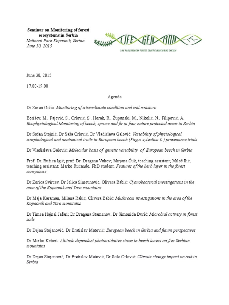 Ecophysiological Monitoring of beech, spruce and fir at four nature protected areas in Serbia