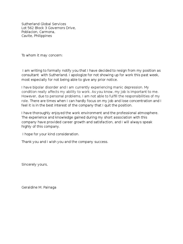consultant with Sutherland. I apologize for not showing up for work this past week,