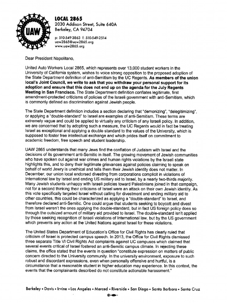 the State Department definition of anti-Semitism by the UC Regents. As members of the union