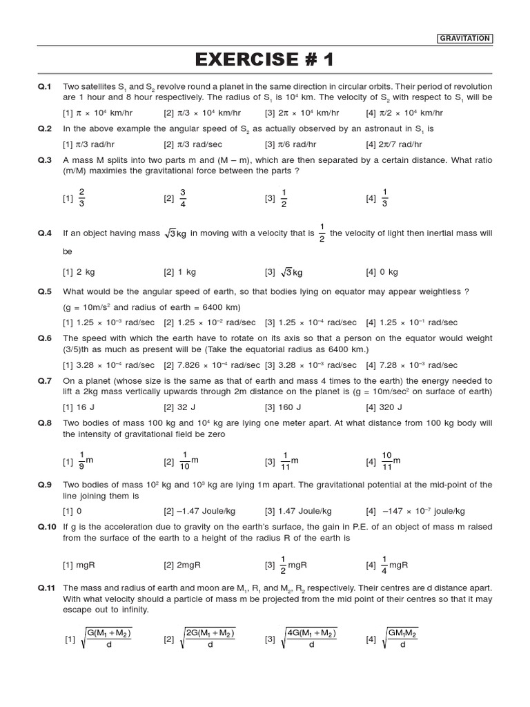 Q.11 The mass and radius of earth and moon are M1, R1 and M2, R2 respectively. Their centres are d distance apart.