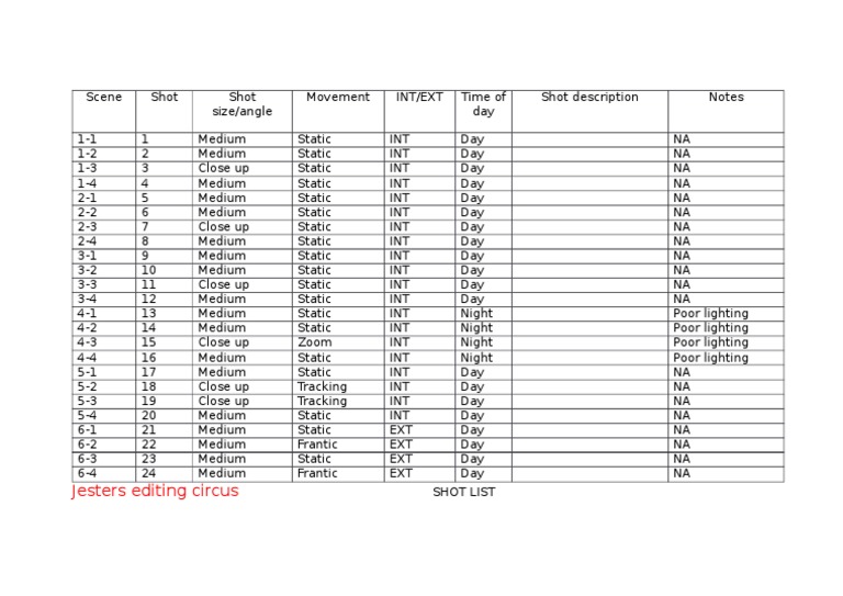 SHOT LIST