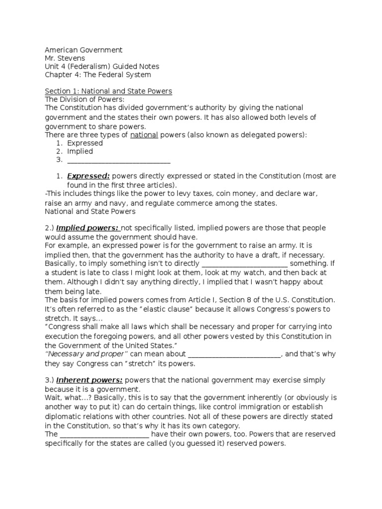 2.) Implied powers: not specifically listed, implied powers are those that people